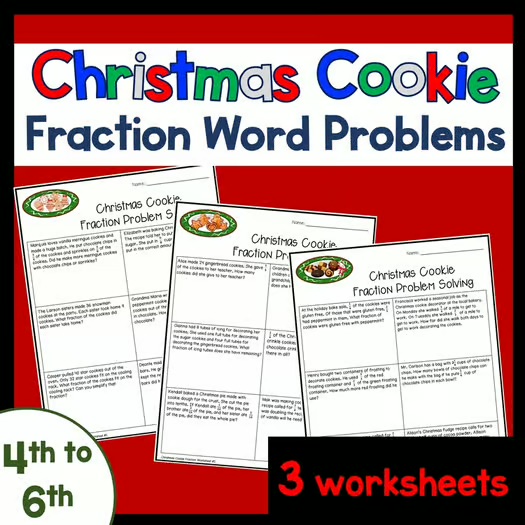 Being comfortable working through word problems is crucial for all students, and this christmas cookie-themed fractions activity is a great way to help your classroom practice!